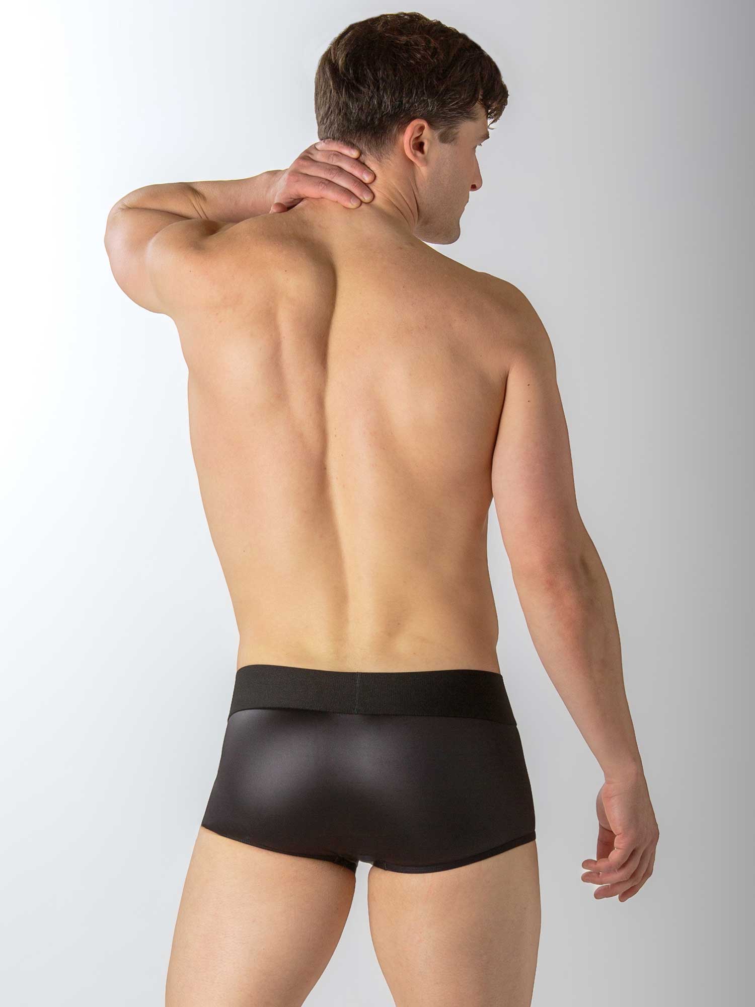 De Night Universe Trunk van WOH neemt je mee naar de geheime en opwindende wereld van de nacht. De glanzende vinylstof met leerachtige uitstraling geeft deze trunk een uitgesproken stoere en dominante look. De brede tailleband met het WOH-logo in siliconen maakt het geheel nog krachtiger. De trunk biedt een nauwsluitende pasvorm die je vormen accentueert, terwijl de achterkant volledig bedekt is voor een strakke, klassieke look met een erotische twist.