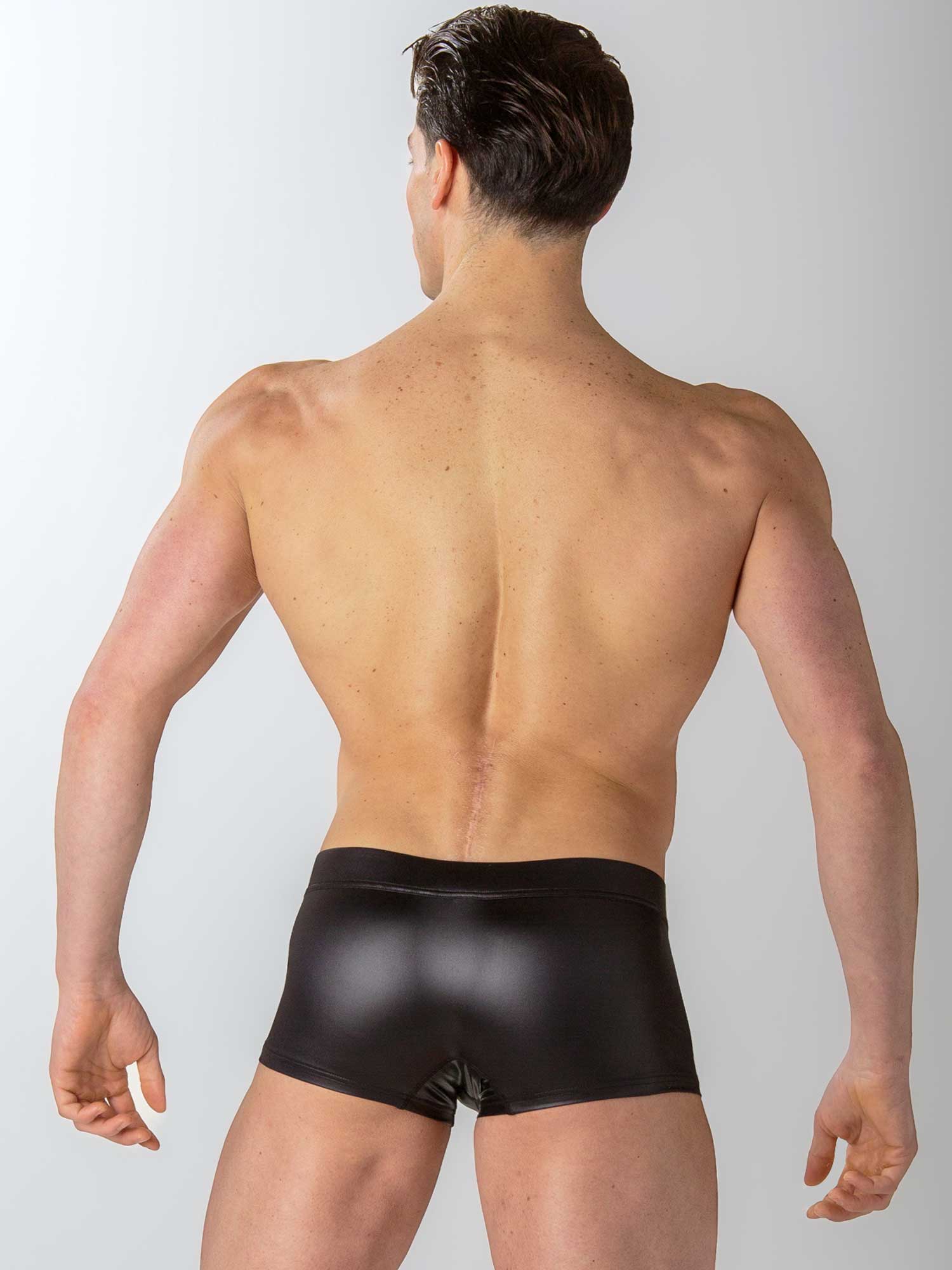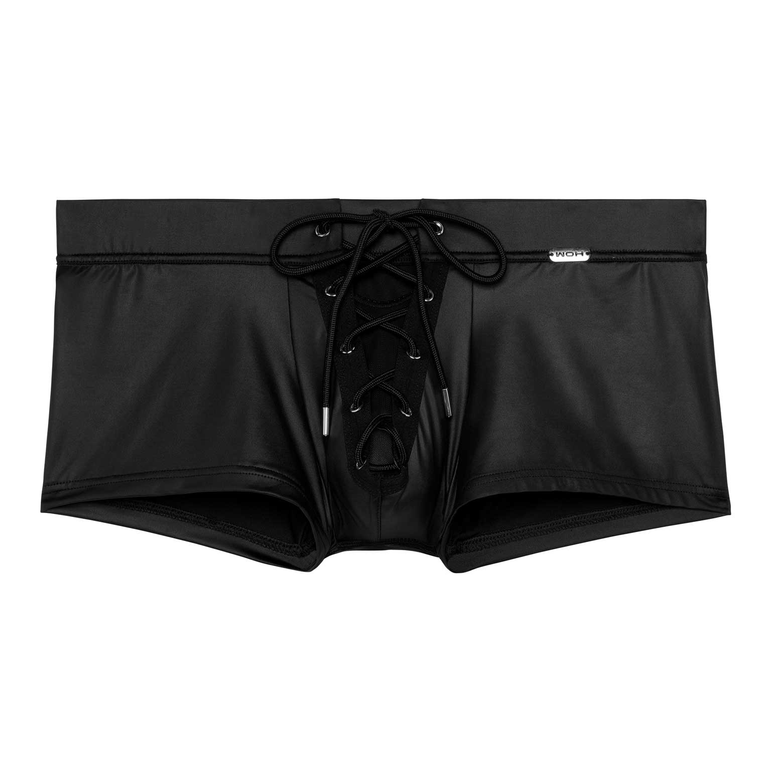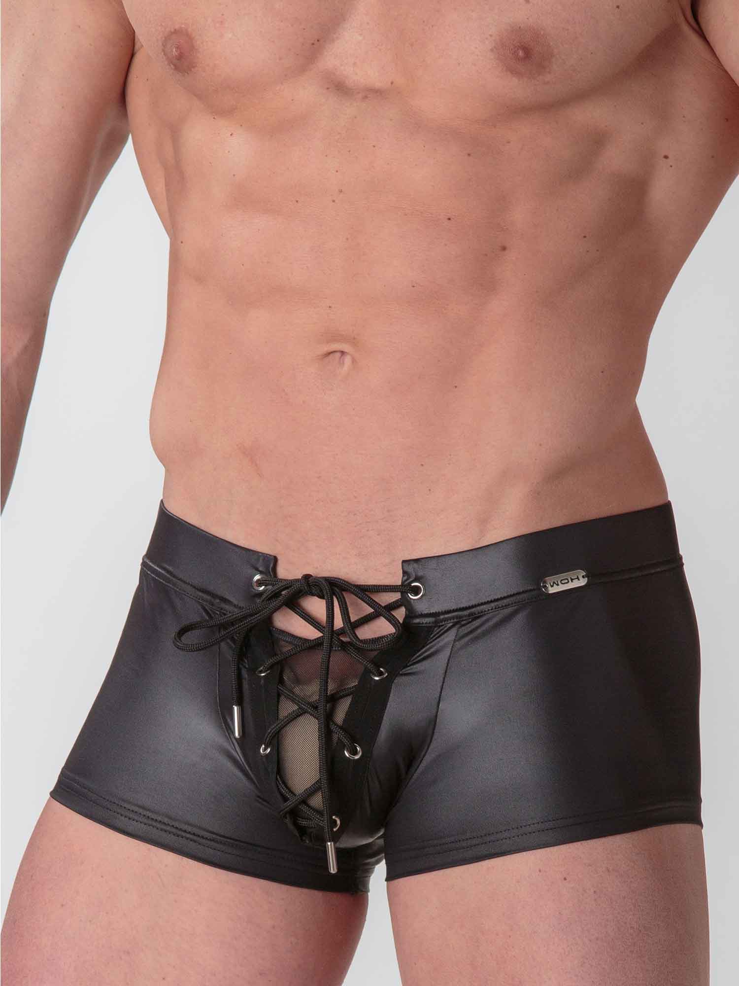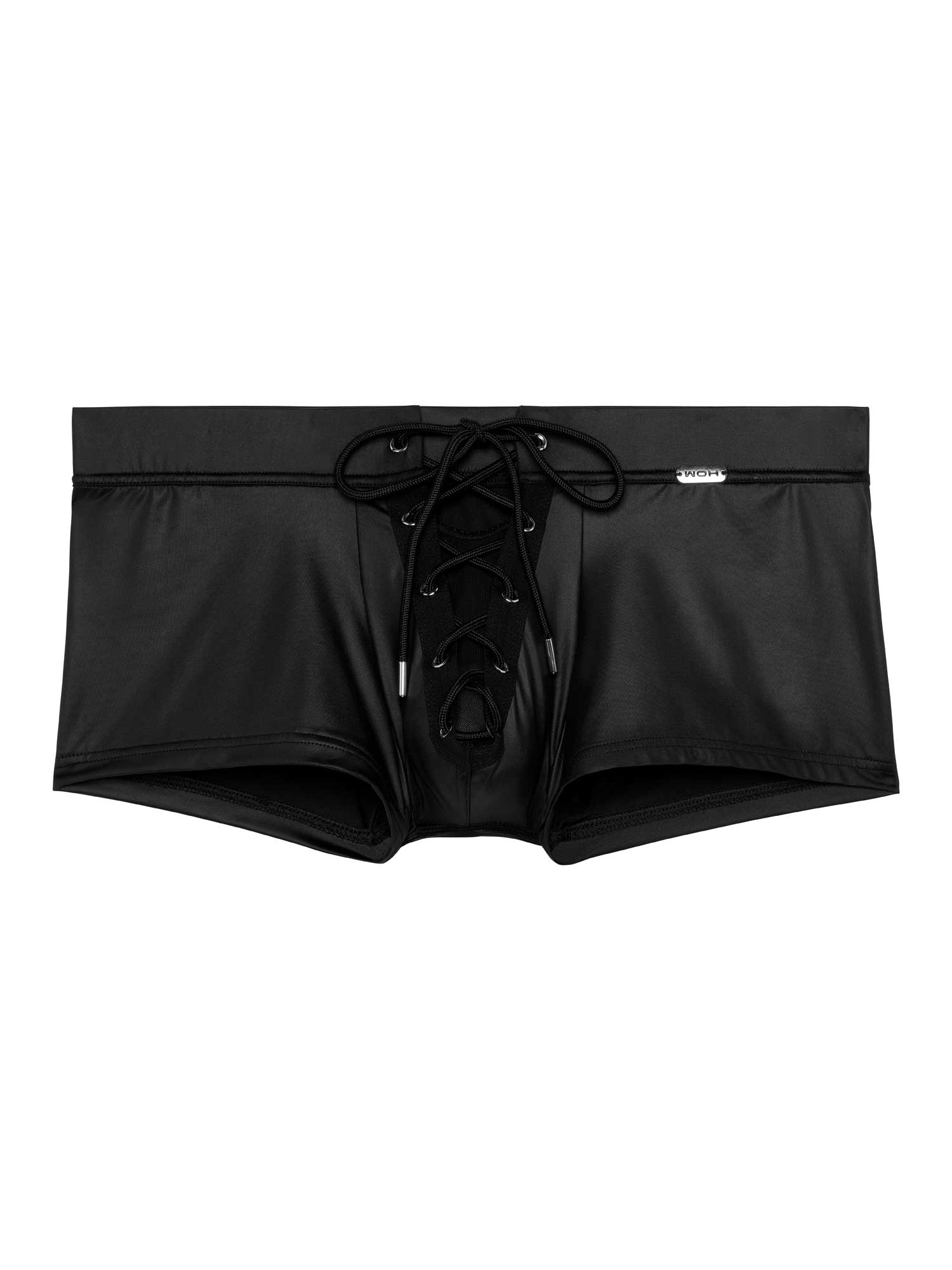 De Night Universe Trunk van WOH dompelt je onder in een wereld van gedurfde luxe. Deze trunk is gemaakt van zwarte vinylstof met een leerachtige glans en heeft een vetersluiting aan de voorkant, waarmee je direct een krachtig statement maakt. De stof sluit mooi aan op de huid en voelt tegelijkertijd stevig en verleidelijk aan. De brede tailleband en het transparante meshdetail tussen de veters zorgen voor een extra sensuele uitstraling. Voor wie durft te domineren in stijl.